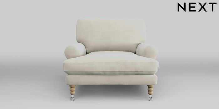 7.0.3 Buy Erin Deep Relaxed Sit Armchair Luxe Chenille Oyster High Classic Turned Chrome Castor - Light from the Next UK online shop Click here to use our accessible website
