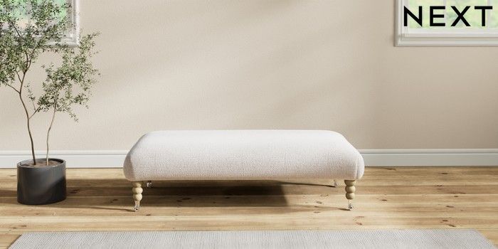 7.2.6 Buy Erin Deep Relaxed Sit Extra Large Footstool Multi Weave Oyster High Classic Turned Chrome Castor - Light from the Next UK online shop Click here to use our accessible website