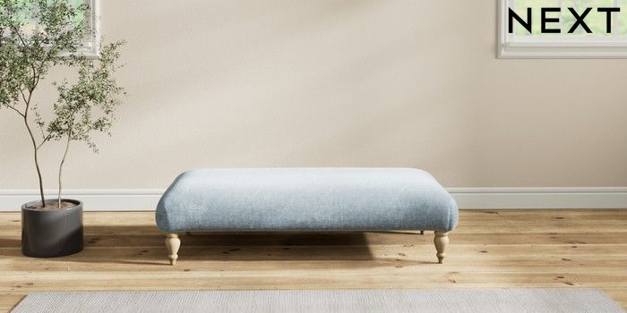 7.2.6 Buy Erin Deep Relaxed Sit Extra Large Footstool Plush Chenille Light Blue High Classic Turned - Light from the Next UK online shop Click here to use our accessible website