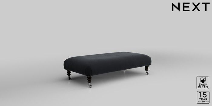 6.12.1 Buy Erin Deep Relaxed Sit Extra Large Footstool Plush Velvet Easy Clean Charcoal Grey High Classic Turned Chrome Castor - Dark from the Next UK online shop Click here to use our accessible website