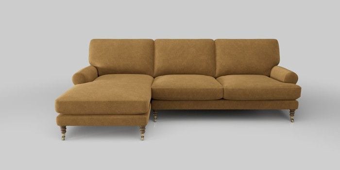 7.0.3 Buy Erin Deep Relaxed Sit Medium Sofa Chaise - Left Hand Luxe Chenille Honey Yellow High Classic Turned Brass Castor - Dark from the Next UK online shop Click here to use our accessible website