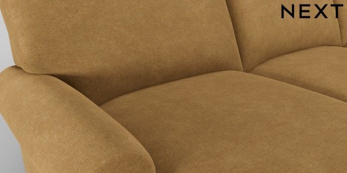 7.0.3 Buy Erin Deep Relaxed Sit Medium Sofa Chaise - Left Hand Luxe Chenille Honey Yellow High Classic Turned Brass Castor - Light from the Next UK online shop Click here to use our accessible website