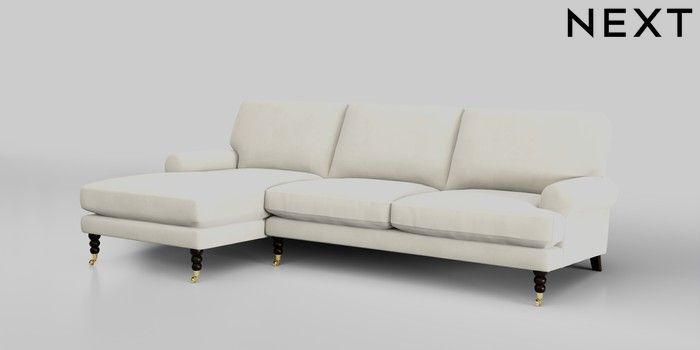 7.0.3 Buy Erin Deep Relaxed Sit Medium Sofa Chaise - Left Hand Luxe Chenille Oyster High Classic Turned Brass Castor - Dark from the Next UK online shop Click here to use our accessible website