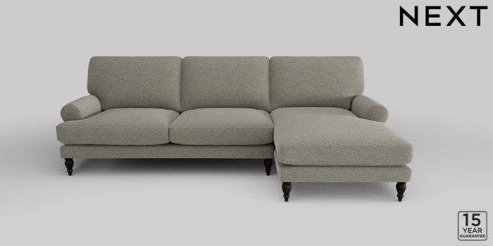 6.12.1 Buy Erin Deep Relaxed Sit Medium Sofa Chaise - Right Hand Chunky Marl Light Olive Green High Classic Turned - Dark from the Next UK online shop Click here to use our accessible website