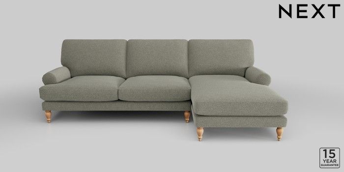 6.12.1 Buy Erin Deep Relaxed Sit Medium Sofa Chaise - Right Hand Chunky Marl Light Olive Green High Classic Turned - Light from the Next UK online shop Click here to use our accessible website