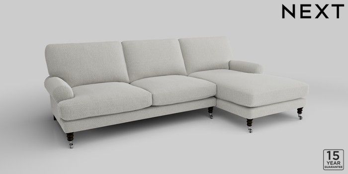 6.12.1 Buy Erin Deep Relaxed Sit Medium Sofa Chaise - Right Hand Chunky Texture Dove High Classic Turned Chrome Castor - Dark from the Next UK online shop Click here to use our accessible website