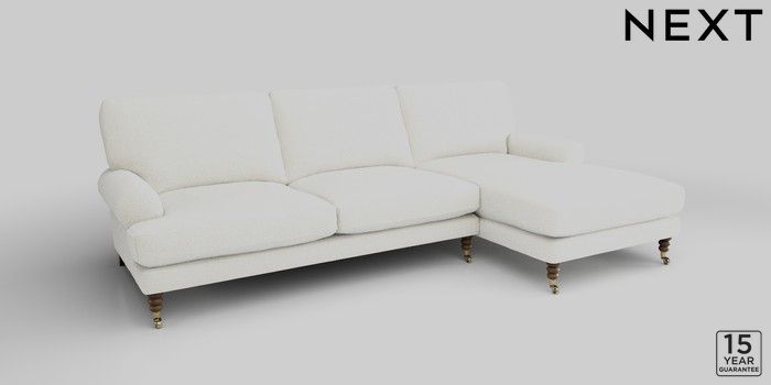 6.12.1 Buy Erin Deep Relaxed Sit Medium Sofa Chaise - Right Hand Chunky Texture Oyster High Classic Turned Brass Castor - Dark from the Next UK online shop Click here to use our accessible website