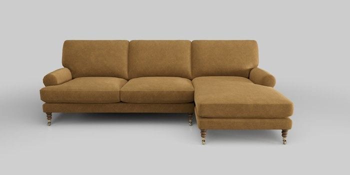 7.0.3 Buy Erin Deep Relaxed Sit Medium Sofa Chaise - Right Hand Luxe Chenille Honey Yellow High Classic Turned Brass Castor - Dark from the Next UK online shop Click here to use our accessible website
