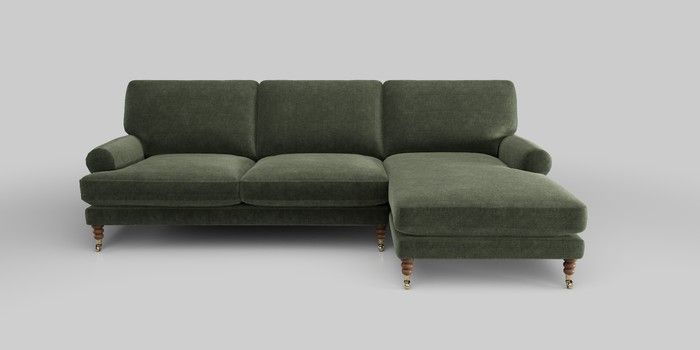 7.0.3 Buy Erin Deep Relaxed Sit Medium Sofa Chaise - Right Hand Luxe Chenille Mid Green High Classic Turned Brass Castor - Mid from the Next UK online shop Click here to use our accessible website