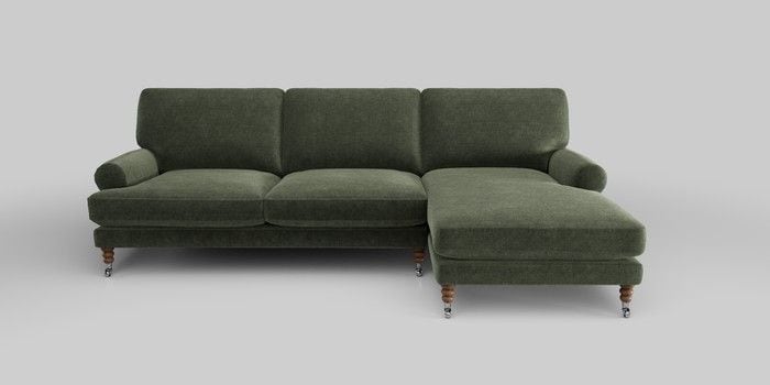 7.0.3 Buy Erin Deep Relaxed Sit Medium Sofa Chaise - Right Hand Luxe Chenille Mid Green High Classic Turned Chrome Castor - Mid from the Next UK online shop Click here to use our accessible website
