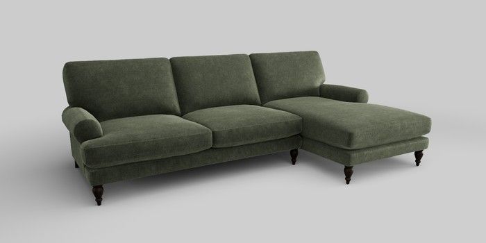 6.12.1 Buy Erin Deep Relaxed Sit Medium Sofa Chaise - Right Hand Luxe Chenille Mid Green High Classic Turned - Dark from the Next UK online shop Click here to use our accessible website