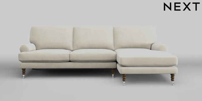 7.0.3 Buy Erin Deep Relaxed Sit Medium Sofa Chaise - Right Hand Luxe Chenille Oyster High Classic Turned Chrome Castor - Mid from the Next UK online shop Click here to use our accessible website