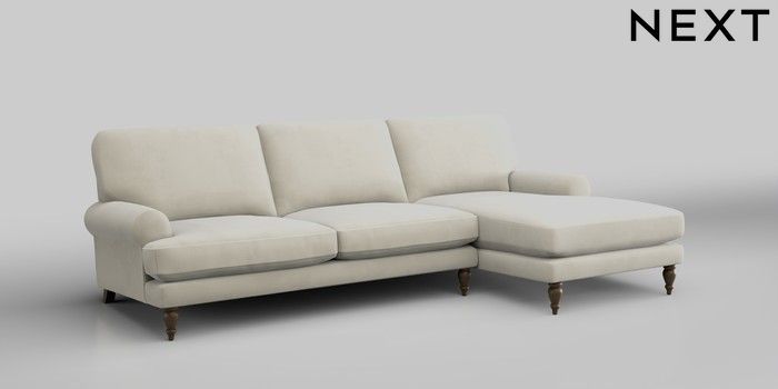 7.0.3 Buy Erin Deep Relaxed Sit Medium Sofa Chaise - Right Hand Luxe Chenille Oyster High Classic Turned - Mid from the Next UK online shop Click here to use our accessible website