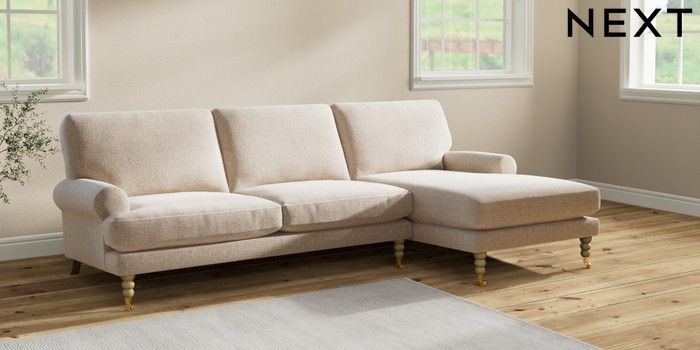 7.2.6 Buy Erin Deep Relaxed Sit Medium Sofa Chaise - Right Hand Multi Weave Mid Natural High Classic Turned Brass Castor - Light from the Next UK online shop Click here to use our accessible website