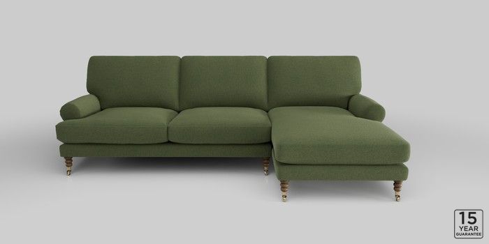 6.12.1 Buy Erin Deep Relaxed Sit Medium Sofa Chaise - Right Hand Ripple Chenille Mid Moss Green High Classic Turned Brass Castor - Dark from the Next UK online shop Click here to use our accessible website