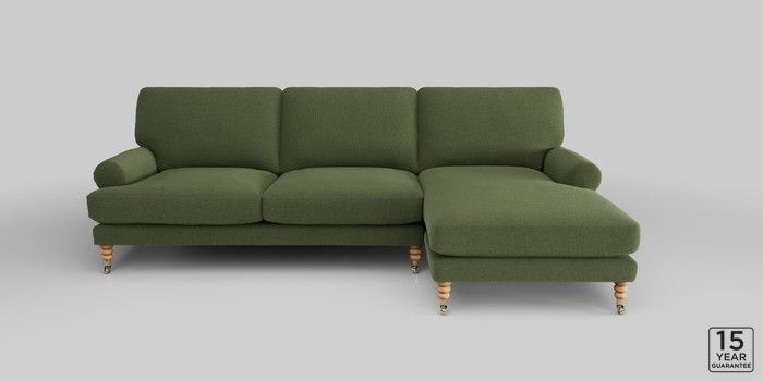 6.12.1 Buy Erin Deep Relaxed Sit Medium Sofa Chaise - Right Hand Ripple Chenille Mid Moss Green High Classic Turned Brass Castor - Light from the Next UK online shop Click here to use our accessible website