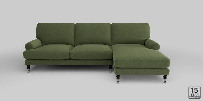 6.12.1 Buy Erin Deep Relaxed Sit Medium Sofa Chaise - Right Hand Ripple Chenille Mid Moss Green High Classic Turned Chrome Castor - Dark from the Next UK online shop Click here to use our accessible website