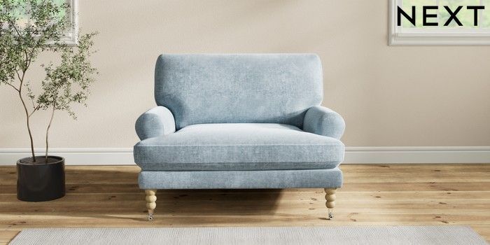 7.2.6 Buy Erin Deep Relaxed Sit Snuggle Plush Chenille Light Blue High Classic Turned Chrome Castor - Light from the Next UK online shop Click here to use our accessible website