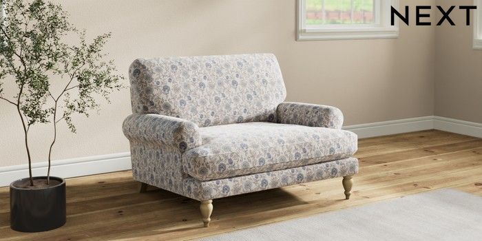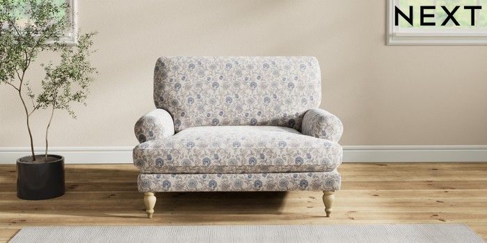 7.3.1 Buy Erin Deep Relaxed Sit Snuggle Relaxed Linen Look Print Woodblock Floral Blue High Classic Turned - Light from the Next UK online shop Click here to use our accessible website