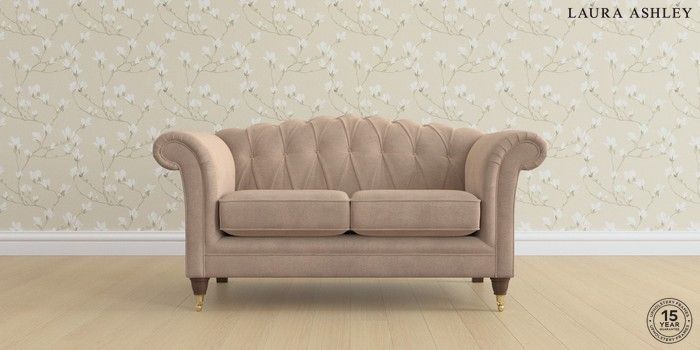 6.12.1 Buy Gloucester Button Back by Laura Ashley 2 Seater Small Sofa Ailsworth Mink Natural Low Brass Castor - Chestnut from the Next UK online shop Click here to use our accessible website