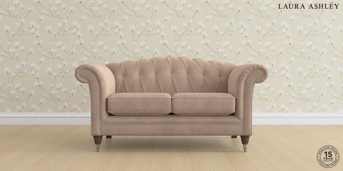 6.12.1 Buy Gloucester Button Back by Laura Ashley 2 Seater Small Sofa Ailsworth Mink Natural Low Chrome Castor - Chestnut from the Next UK online shop Click here to use our accessible website