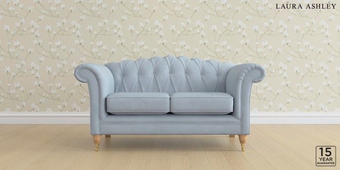 6.12.13 Buy Gloucester Button Back by Laura Ashley 2 Seater Small Sofa Ailsworth Newport Blue Low Brass Castor - Light Oak from the Next UK online shop Click here to use our accessible website