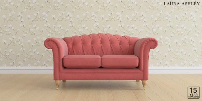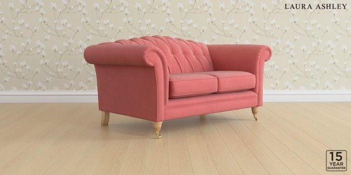 6.12.13 Buy Gloucester Button Back by Laura Ashley 2 Seater Small Sofa Ailsworth Old Rose Pink Low Brass Castor - Light Oak from the Next UK online shop Click here to use our accessible website