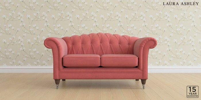 6.12.13 Buy Gloucester Button Back by Laura Ashley 2 Seater Small Sofa Ailsworth Old Rose Pink Low Chrome Castor - Chestnut from the Next UK online shop Click here to use our accessible website