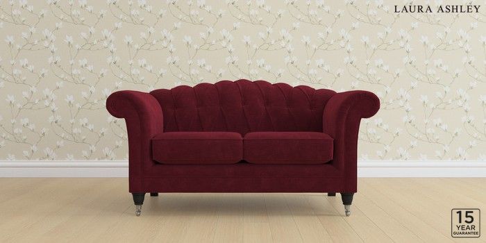 7.0.3 Buy Gloucester Button Back by Laura Ashley 2 Seater Small Sofa Alwyn Velvet Burgundy Red Low Chrome Castor - Black from the Next UK online shop Click here to use our accessible website