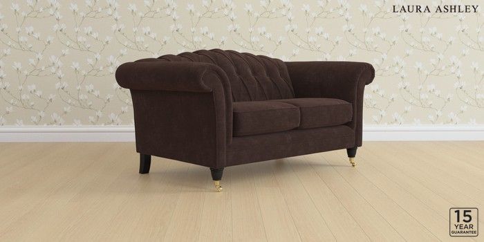 6.12.1 Buy Gloucester Button Back by Laura Ashley 2 Seater Small Sofa Alwyn Velvet Chocolate Brown Low Brass Castor - Black from the Next UK online shop Click here to use our accessible website
