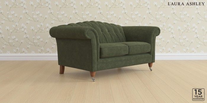 6.12.13 Buy Gloucester Button Back by Laura Ashley 2 Seater Small Sofa Alwyn Velvet Ivy Green Low Chrome Castor - Teak from the Next UK online shop Click here to use our accessible website