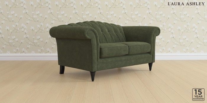 7.0.3 Buy Gloucester Button Back by Laura Ashley 2 Seater Small Sofa Alwyn Velvet Ivy Green Low Turned - Black from the Next UK online shop Click here to use our accessible website