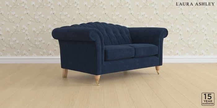6.12.1 Buy Gloucester Button Back by Laura Ashley 2 Seater Small Sofa Alwyn Velvet Midnight Navy Low Brass Castor - Light Oak from the Next UK online shop Click here to use our accessible website