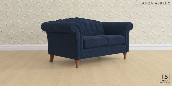 6.12.13 Buy Gloucester Button Back by Laura Ashley 2 Seater Small Sofa Alwyn Velvet Midnight Navy Low Turned - Teak from the Next UK online shop Click here to use our accessible website