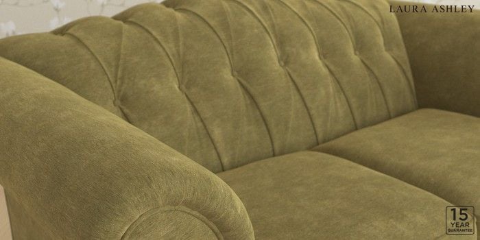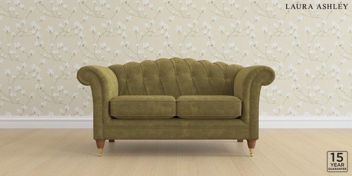 6.12.1 Buy Gloucester Button Back by Laura Ashley 2 Seater Small Sofa Alwyn Velvet Olive Green Low Brass Castor - Teak from the Next UK online shop Click here to use our accessible website
