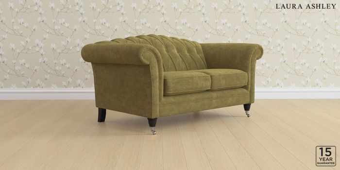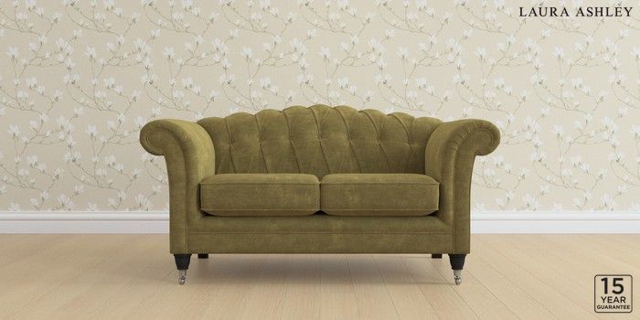 6.12.1 Buy Gloucester Button Back by Laura Ashley 2 Seater Small Sofa Alwyn Velvet Olive Green Low Chrome Castor - Black from the Next UK online shop Click here to use our accessible website