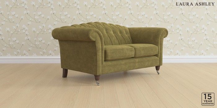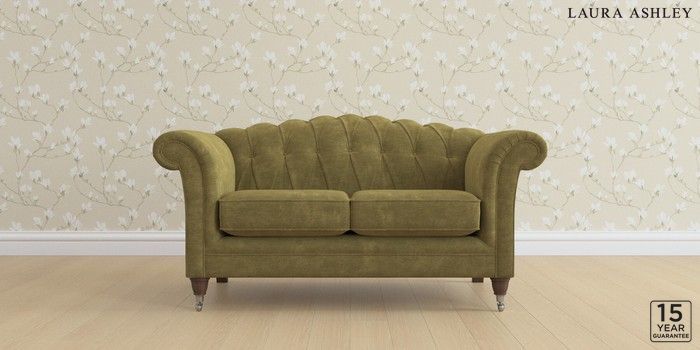 7.0.3 Buy Gloucester Button Back by Laura Ashley 2 Seater Small Sofa Alwyn Velvet Olive Green Low Chrome Castor - Chestnut from the Next UK online shop Click here to use our accessible website