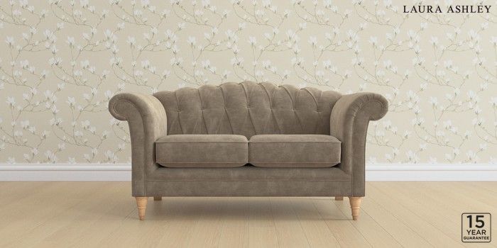 6.12.13 Buy Gloucester Button Back by Laura Ashley 2 Seater Small Sofa Alwyn Velvet Truffle Natural Low Turned - Light Oak from the Next UK online shop Click here to use our accessible website