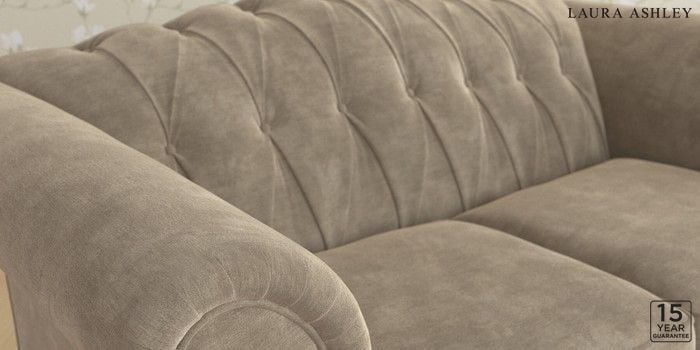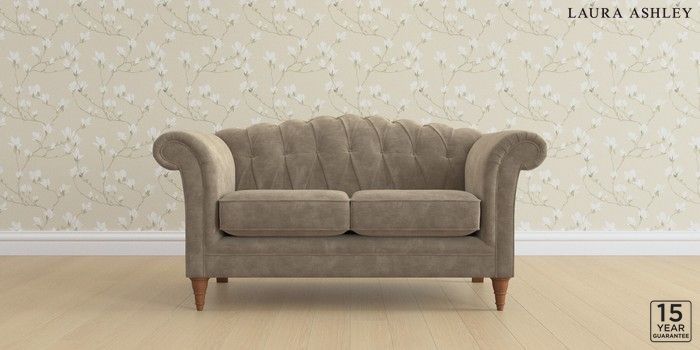 6.12.13 Buy Gloucester Button Back by Laura Ashley 2 Seater Small Sofa Alwyn Velvet Truffle Natural Low Turned - Teak from the Next UK online shop Click here to use our accessible website
