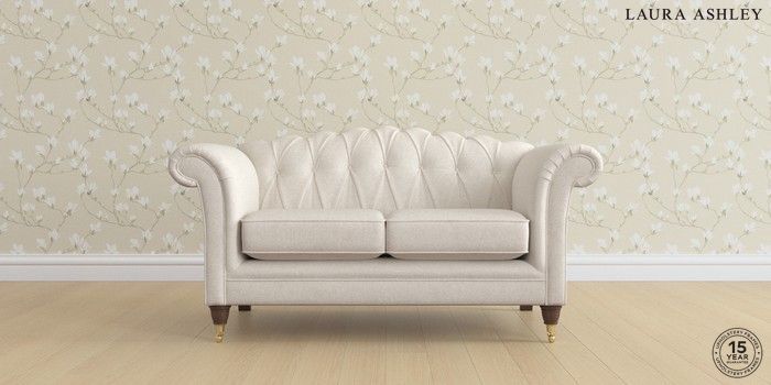 7.2.6 Buy Gloucester Button Back by Laura Ashley 2 Seater Small Sofa Anneliese Oyster Natural Low Brass Castor - Chestnut from the Next UK online shop Click here to use our accessible website
