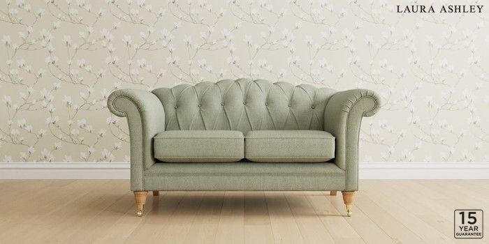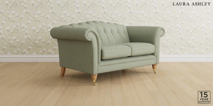 6.12.13 Buy Gloucester Button Back by Laura Ashley 2 Seater Small Sofa Anneliese Sage Green Low Brass Castor - Light Oak from the Next UK online shop Click here to use our accessible website