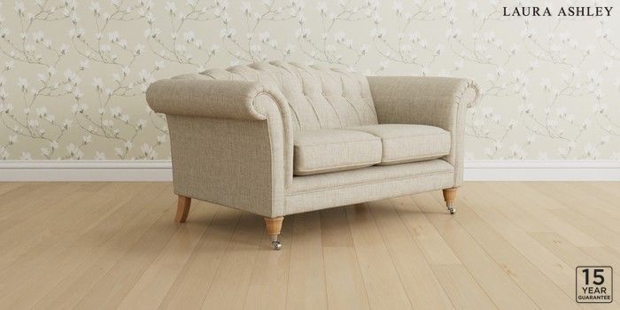 6.12.13 Buy Gloucester Button Back by Laura Ashley 2 Seater Small Sofa Bainton Natural Low Chrome Castor - Light Oak from the Next UK online shop Click here to use our accessible website