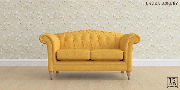 6.12.13 Buy Gloucester Button Back by Laura Ashley 2 Seater Small Sofa Bainton Ochre Yellow Low Chrome Castor - Light Oak from the Next UK online shop Click here to use our accessible website