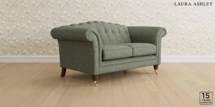 6.12.13 Buy Gloucester Button Back by Laura Ashley 2 Seater Small Sofa Bainton Sage Green Low Brass Castor - Teak from the Next UK online shop Click here to use our accessible website