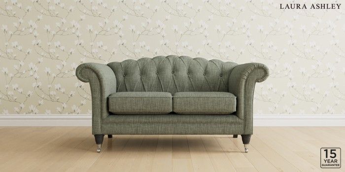 6.12.13 Buy Gloucester Button Back by Laura Ashley 2 Seater Small Sofa Bainton Sage Green Low Chrome Castor - Black from the Next UK online shop Click here to use our accessible website