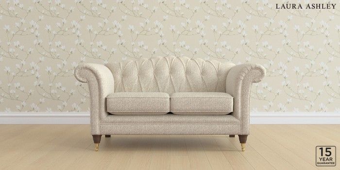 6.12.13 Buy Gloucester Button Back by Laura Ashley 2 Seater Small Sofa Borwick Natural Low Brass Castor - Chestnut from the Next UK online shop Click here to use our accessible website