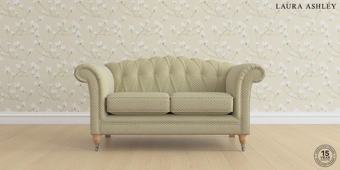 6.12.1 Buy Gloucester Button Back by Laura Ashley 2 Seater Small Sofa Chequers Hedgerow Green Low Chrome Castor - Light Oak from the Next UK online shop Click here to use our accessible website