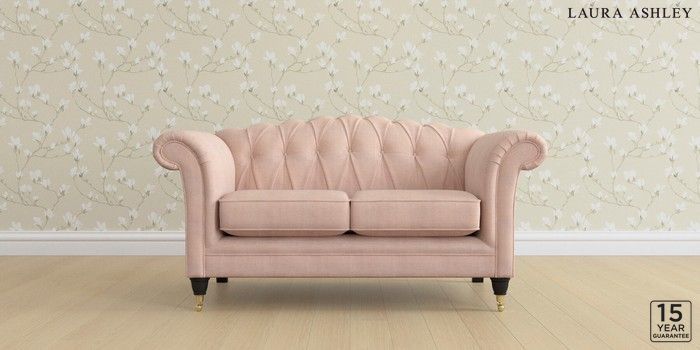 6.12.13 Buy Gloucester Button Back by Laura Ashley 2 Seater Small Sofa Edwin Chenille Blush Pink Low Brass Castor - Black from the Next UK online shop Click here to use our accessible website