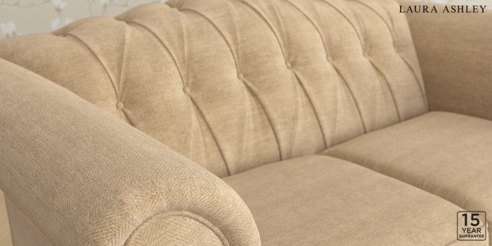 6.12.1 Buy Gloucester Button Back by Laura Ashley 2 Seater Small Sofa Edwin Chenille Gold Natural Low Brass Castor - Light Oak from the Next UK online shop Click here to use our accessible website