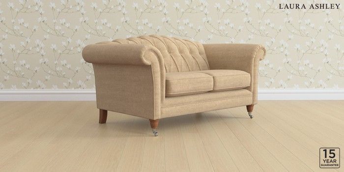 6.12.1 Buy Gloucester Button Back by Laura Ashley 2 Seater Small Sofa Edwin Chenille Gold Natural Low Chrome Castor - Teak from the Next UK online shop Click here to use our accessible website